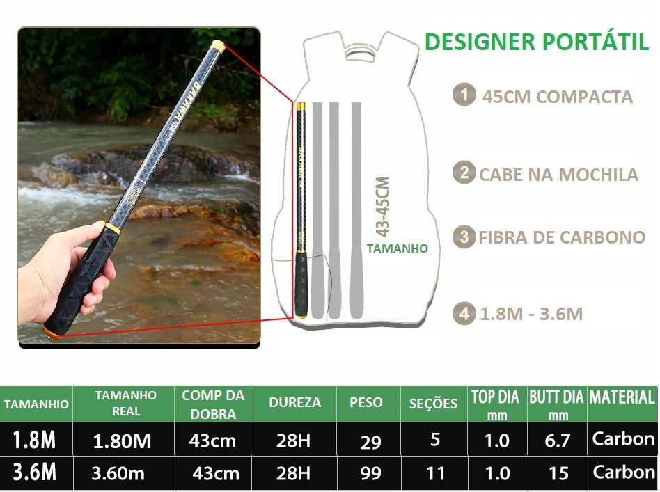 Vara BAKAWA De Pesca Telescópica Fibra De Carbono